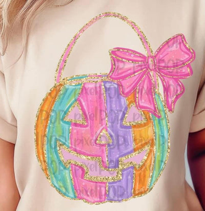 Pastel Faux Glitter Pumpkin Bucket Shirt